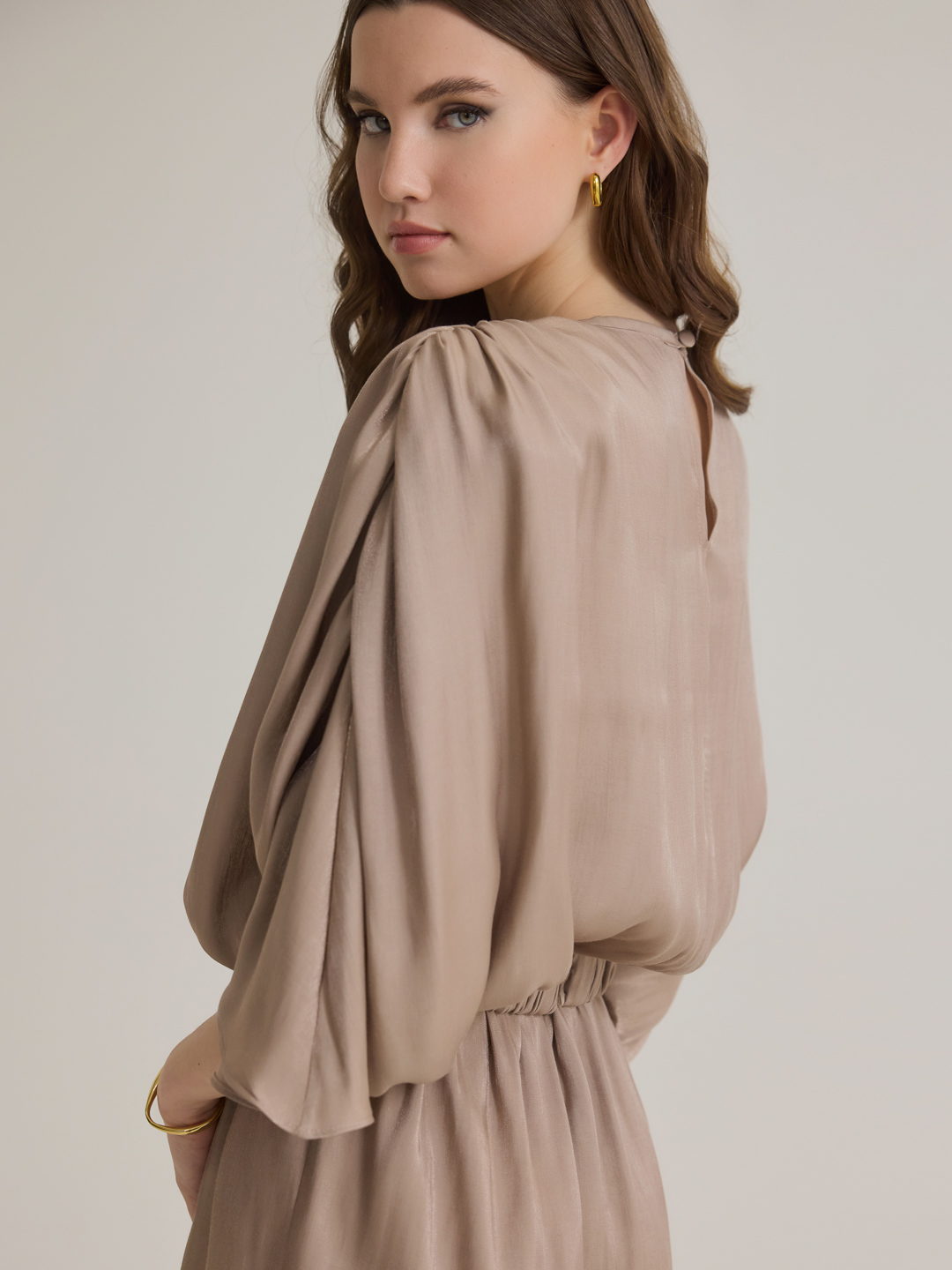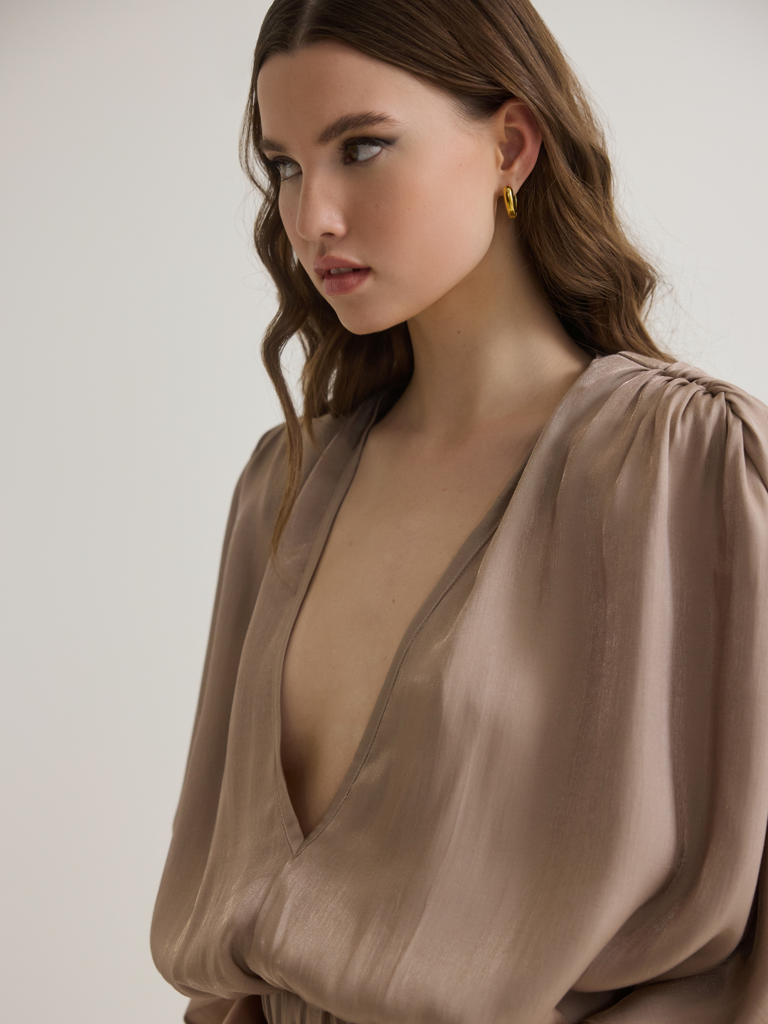 Το σατέν ύφασμα χαρίζει απαλότητα και διακριτική λάμψη, κάνοντας το ολόσωμο σορτς ιδανικό για βραδινές εμφανίσεις ή πιο ιδιαίτερες περιστάσεις. Το σχέδιο μπορεί να συνδυαστεί εύκολα με ψηλά παπούτσια ή statement αξεσουάρ για ολοκληρωμένα looks.