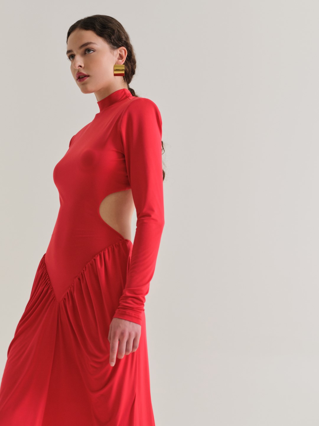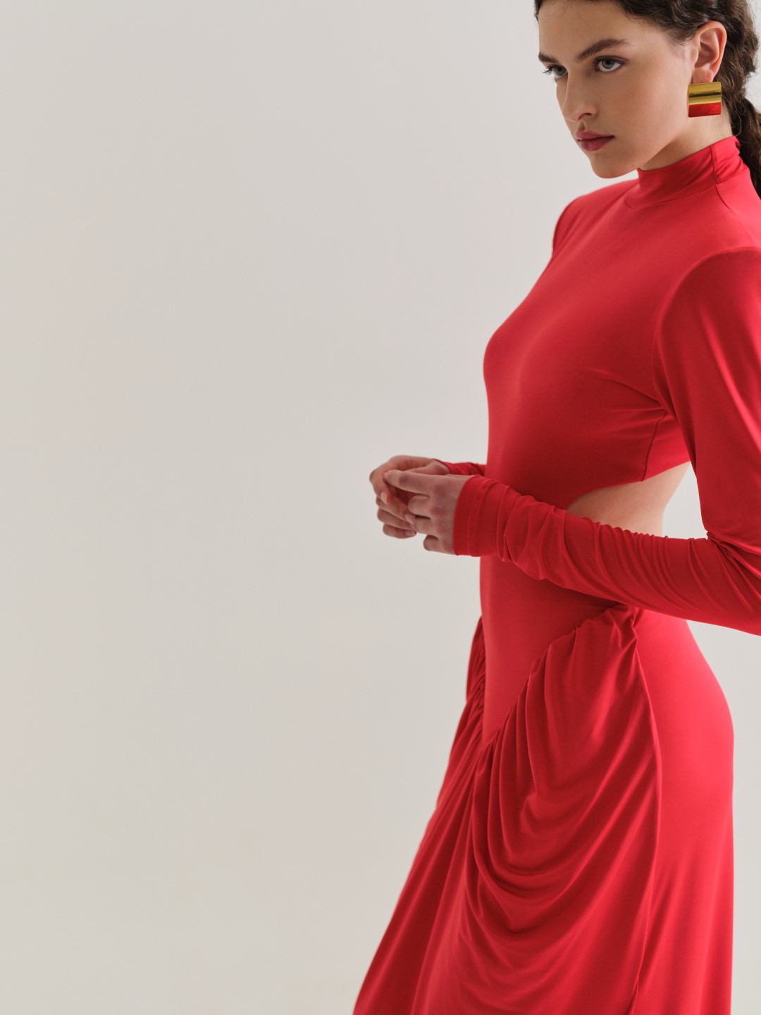 Το φόρεμα CELESTE της CELESTIA COLLECTION είναι διαθέσιμο σε διαχρονικό κόκκινο (Red), αποπνέοντας πολυτέλεια και δυναμισμό σε κάθε σου εμφάνιση.