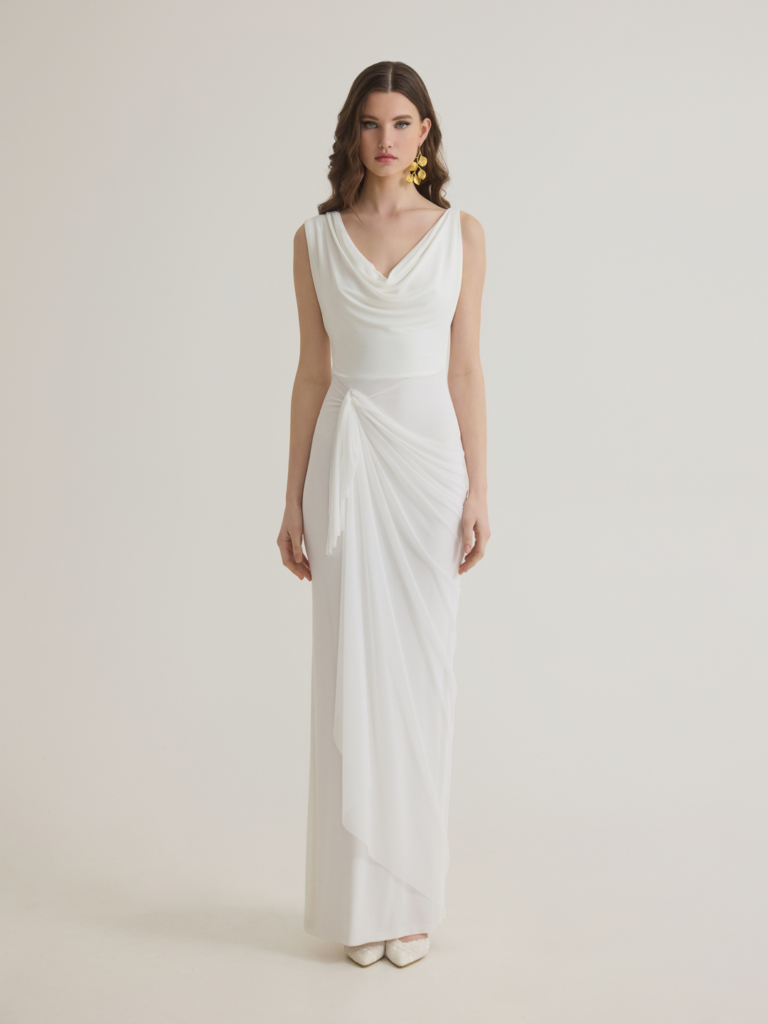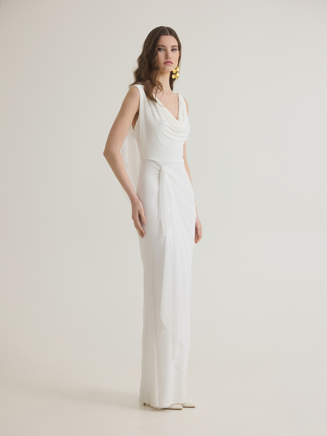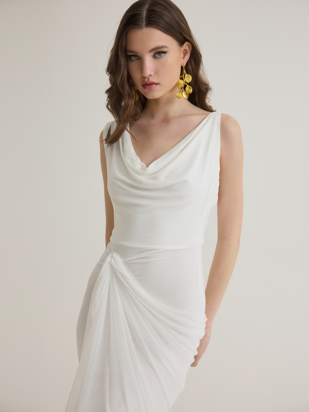 Τα ντραπέ layers δημιουργούν ένα αέρινο και καλοσχηματισμένο αποτέλεσμα, προσφέροντας άνετη και κολακευτική εφαρμογή που αγκαλιάζει τη σιλουέτα.