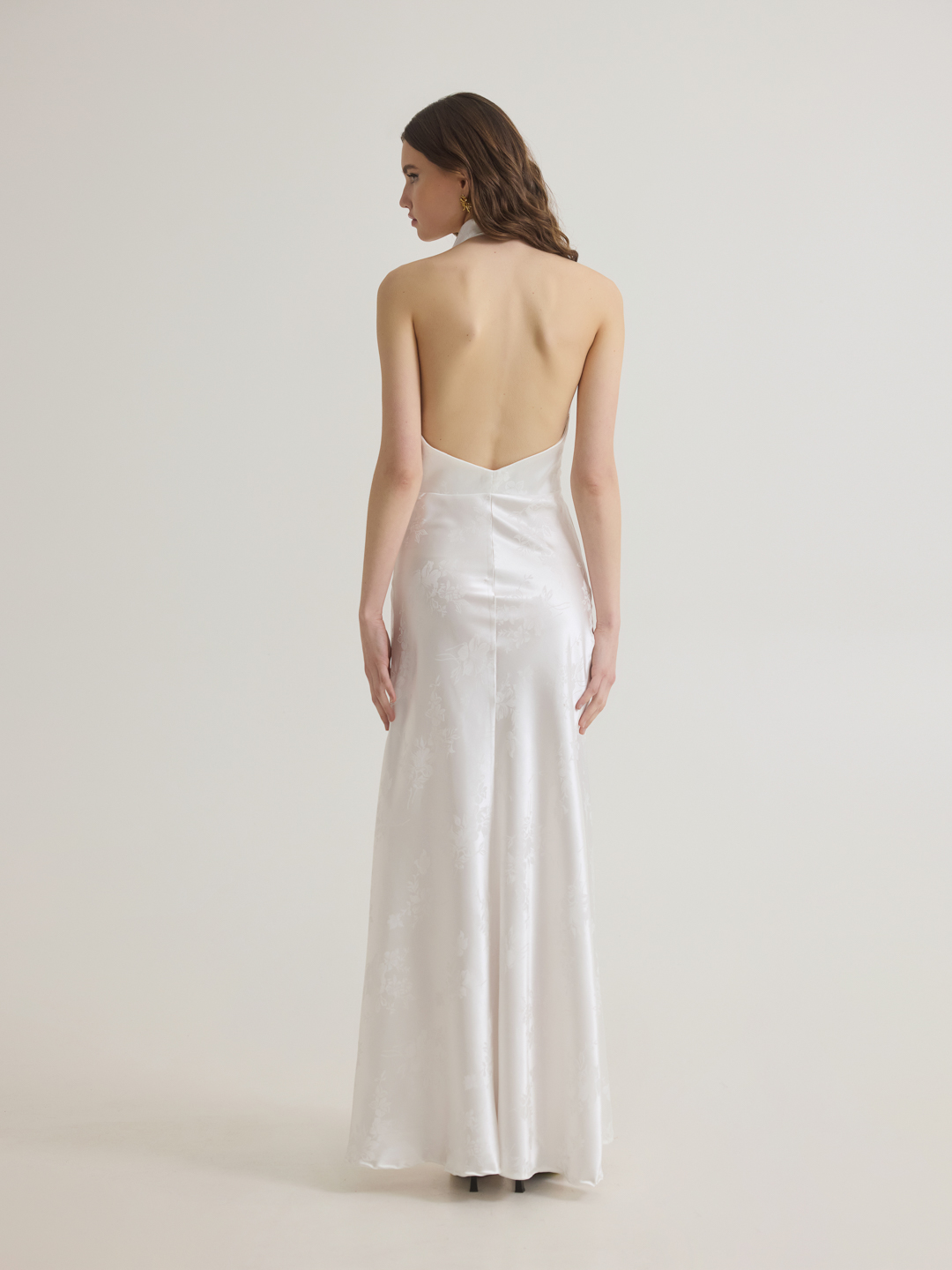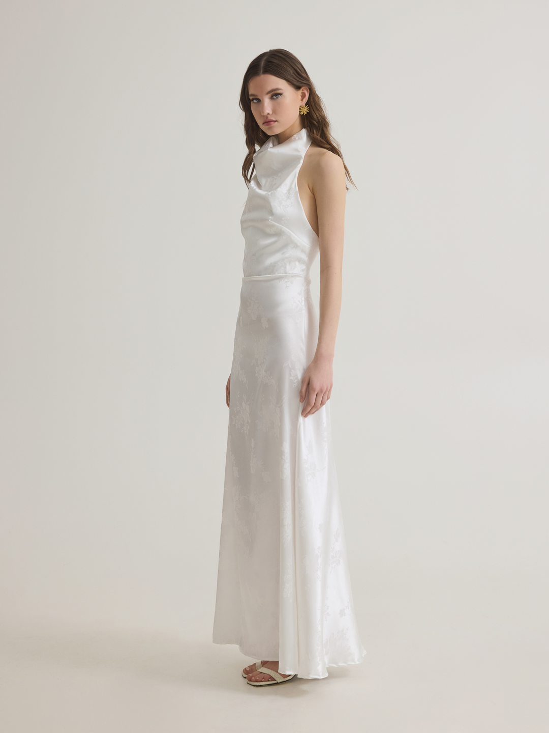 To σατέν ζιβάγκο φόρεμα Flora της ÉCLORE Collection είναι διαθέσιμο στα χρώματα White (λευκό) και Rose (ροζ).