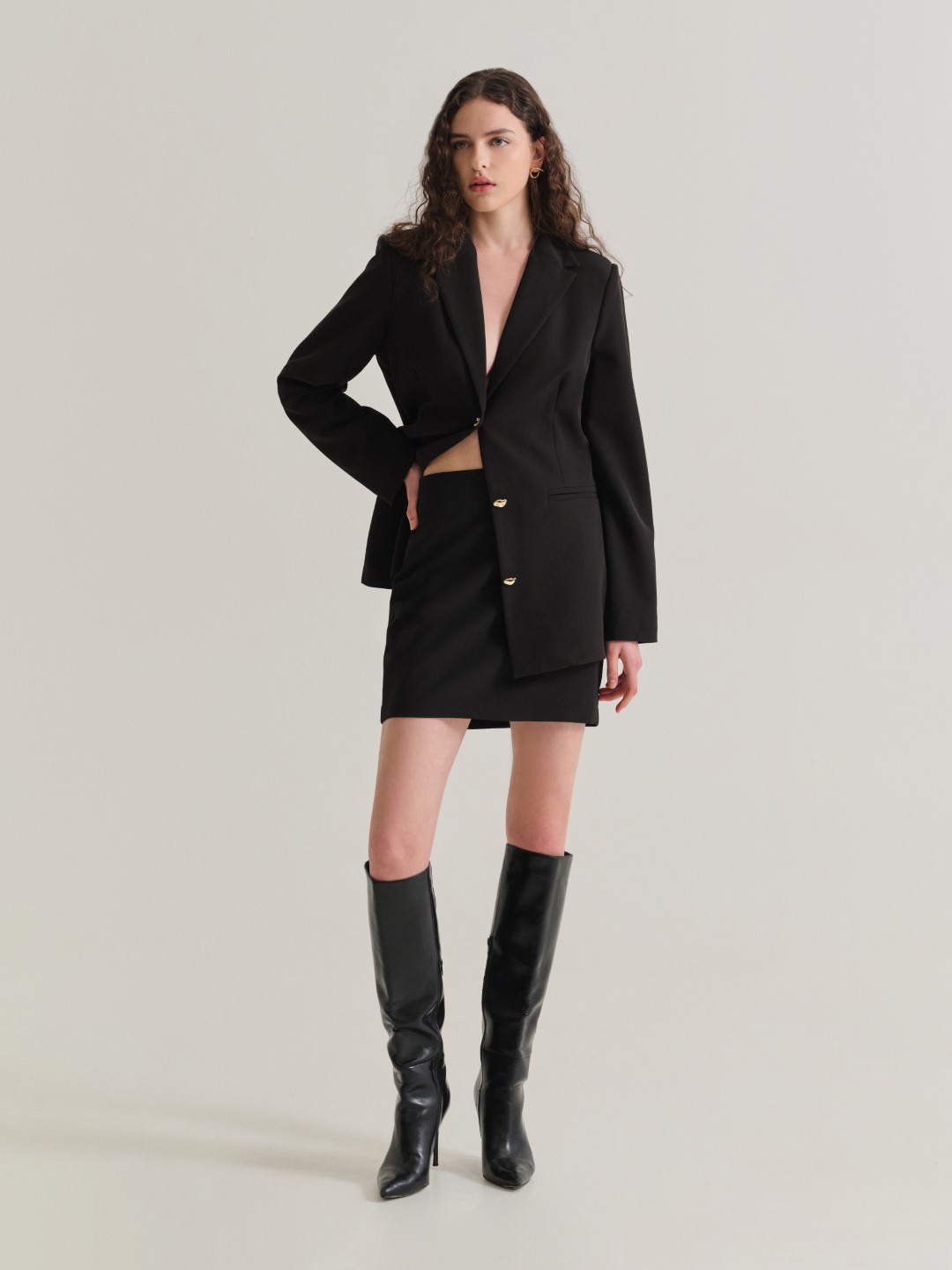 Μίνι ψηλόμεση φούστα με γραμμή που αγκαλιάζει αρμονικά το σώμα και τονίζει τη μέση, προσφέροντας ένα ισορροπημένο αποτέλεσμα ανάμεσα στην κομψότητα και τη μοντέρνα αισθητική. Η καθαρή της φόρμα και το minimal design την καθιστούν ευέλικτη, ιδανική τόσο για office looks όσο και για βραδινές εξόδους. Φτιαγμένη από ποιοτικό ύφασμα που εφαρμόζει άψογα χωρίς να πιέζει, εξασφαλίζει άνεση και σταθερότητα καθ’ όλη τη διάρκεια της ημέρας.